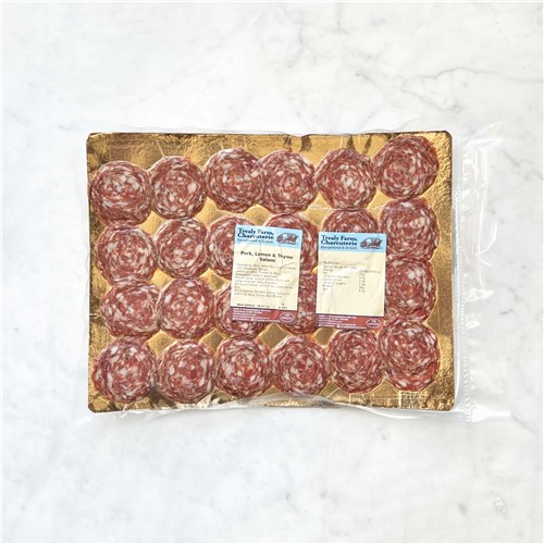 Ingredients:Pork, Sea Salt brine, Salt, Dextrose, Spices, Lemon (0.18%), Thyme (0.18%), Antioxidant (Sodium Ascorbate), Preservative (Sodium Nitrite)