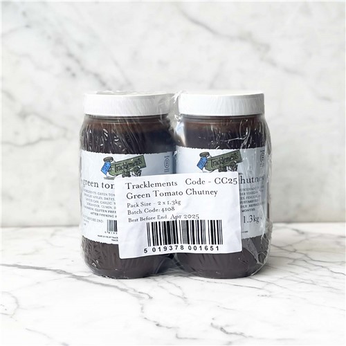 Ingredients: green tomatoes, muscovado sugar, bramley apples, dates, tomatoes, cider vinegar, raw cane sugar, garlic, sea salt, chillies, fenugreek, coriander, cumin, black pepper, mustard seed, cardamom