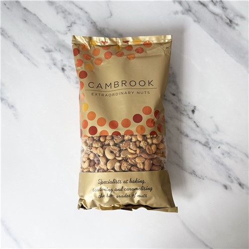 Ingredients: 55.8% Peanuts , 14.5% Cashews , 14.5% Almonds, 8.9% Sugar, 2.5% Sesame Seeds , 1.1% Salt, 0.5% Honey, 0.33% Sunflower Oil. Stabiliser: Gum Arabic (Water, Gum Acacia, Glucose Syrup, Sucrose, Ethanol, Coconut Oil, Rapeseed Oil, Citric Acid). 1.7% Sweet Chilli Seasoning contains: Sugar, Salt, Dried Soy Sauce (Contains: Soy beans, Salt, Spirit Vinegar), Garlic, Onion, Chilli, Yeast Extract, Tomato, Red Bell Pepper, Paprika Extract, Spices, Acidity Regulator: Citric Acid, Rapeseed Oil, Natural Flavouring
