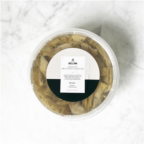 Ingredients: Artichokes, sunflower oil, water, wine vinegar, sea salt, basil, parsley, garlic, chilli, acidity regulator [citric acid (E330)], antioxidant [ascorbic acid (E300)], natural mint flavour