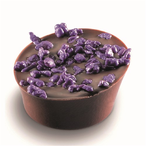 Ingredients: Sugar, cocoa beans, cocoa butter, glucose syrup, pieces of crystallized violets (sugar, natural flowers, acacia gum, violet flavour, colours: E120, E132) (5,5%), blackcurrant puree (Burgundy blackcurrant pulp, sugar) 5%, redcurrant puree (redcurrant pulp, sugar) 5%, stabilizer: D-sorbitol, concentrated butter (milk), whole milk powder, emulsifier (sunflower lecithin), violet flavoring, natural vanilla extract.