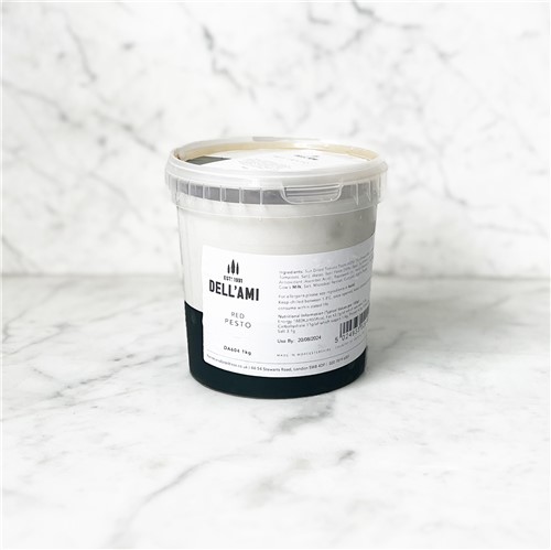 Ingredients: Sundried Tomato Paste (60%) contains Rapeseed Oil, Sundried Tomatoes contains [Sundried Tomato, Salt], Water Basil Puree (24%) contains Basil, Sunflower Oil, Salt, Antioxidant [Ascorbic acid (E300)] Rapeseed Oil Hard Cheese (4%) contains Pasteurised Cow's Milk, Salt, Microbial Rennet, Culture Garlic Puree