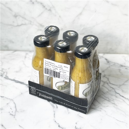 Ingredients: Mustard [Water (60%), Mustard Seed (19%), Spirit Vinegar (18%), Salt (3%), Tumeric (1%)] 30.80%, Raw Cane Sugar Sugar (25.66%), Wholegrain Mustard [Chilli Birds Eye, Red (0.1%), Allspice (0.19%), Black Pepper (0.28%), Sea Salt (2.48%), Water (27.34%), Mustard Seed (28.59%), Vinegar, Cider (41.02%)]15.40%, Cider Vinegar 14.37%, Sunflower Oil 9.24%, Mustard Flour 1.71%, Turmeric 1.54%, Sea Salt 1.28%