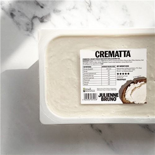 Ingredients:Mother Culture (Soya Drink (SOYA beans, water), Dextrose, Cultures), Coconut Oil, Chicory Root Fibre (inulin), Dextrose, Salt, Emulsifier: Soya Lecithin (SOYA), Acidity Regulator: Lactic Acid, Stabiliser (Locust Bean Gum),