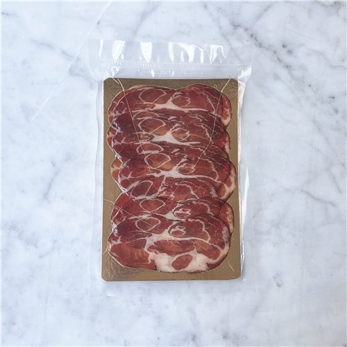 Ingredients:Pork Protein (96.6%), Salt (2.42%), Black Pepper (0.16%), Cinnamon (0.16%), Juniper Berries (0.08%), Cloves (0.08%), Red Wine (0.25%), Sodium Nitrite (0.25%)