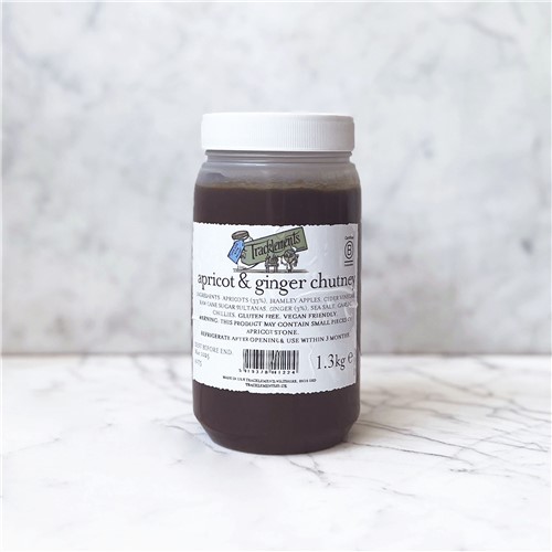 Ingredients: Apricots, Bramley Apples, Cider Vinegar, Raw Cane Sugar, Sultanas, Ginger, Sea Salt, Garlic, Red Chillies.