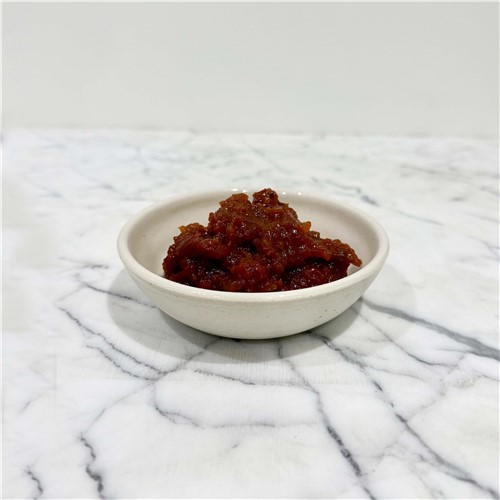 Ingredients:Chopped tomatoes (tomato, tomato juice, acidity regulator; citric acid), granulated sugar, diced red peppers (red sweet pepepr, acidity regulator: citric acid), white grape vinegar, water, refined rapeseed oil (rapeseed oil, processing aid: citric acid), sundried tomatoes (sundried tomatoes, salt), kibbled onions (SULPHITES), coriander seeds, ginger puree (ginger, salt, acidity regulator: citric acid), sea salt
