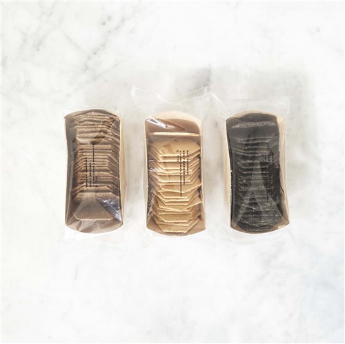 Ingredients: Wheat Wafers contains [Stoneground Wholemeal Flour (Wheat) (92%), Corn Oil, Autolysed Yeast, Salt, Raising Agent [Sodium Bicarbonate]] Charcoal Wafers contains [Stoneground Wholemeal Flour (Wheat) (89%), Corn Oil, Autolysed Yeast, Salt, Malted Barley Flour, Malt Extract (Barley), Raising Agent [Sodium Bicarbonate] Charcoal Powder (1%)] Buttermilk Wafers contains [Wheat Flour, Buttermilk (33%), Butter (Milk) (16%), Whole Milk Powder, Autolysed Yeast, Salt, Fermented Wheat Flour, Sugar, Raising Agent [S