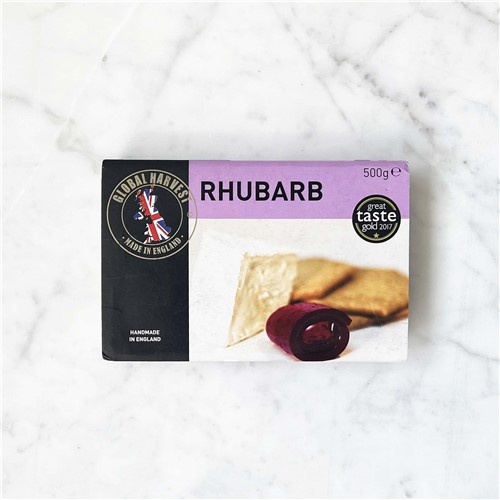 Ingredients: White sugar, water, rhubarb puree, pectin, lemon juice concentrate, natural flavouring, Tricalcium Citrate (E330), citric acid