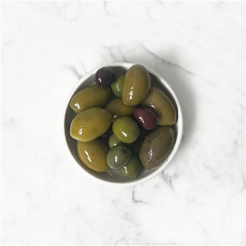 Ingredients: Green Nocellara Olives (Green Olives, Water, Salt, Acidity Regulator: Lactic Acid, Antioxidant: Ascorbic Acid) Black Gaeta Olives (Black Olives, Water, Salt, Acidity Regulator: Lactic Acid, Antioxidant: Ascorbic Acid) Cerignola Olives (Green Olives, Water, Salt, Acidity Regulator: Lactic Acid, Antioxidant: Ascorbic Acid) Brine (Water & Acidity Regulator: Citric Acid, Rapeseed Oil)