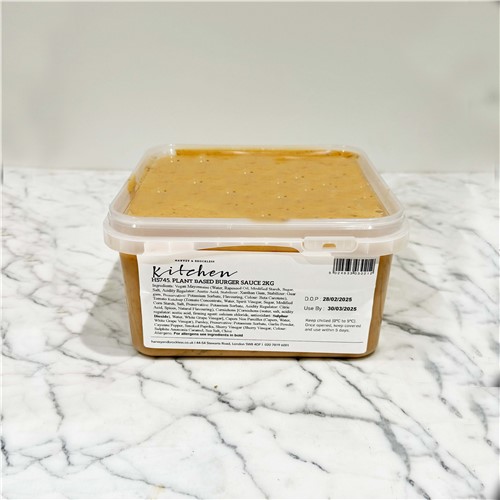 Ingredients:Vegan mayonnaise (water, rapeseed oil, modified starch, sugar, salt, acidity regulator: acetic acid, stabilizers: xanthan gum, guar gum, preservative: potassium sorbate, flavouring, colour: beta carotene), tomato ketchup (tomato concentrate, water, spirit vinegar, sugar, modified corn starch, salt, preservative: potassium sorbate; acidity regulator: citric acid, spices, natural flavourings), cornichons (cornichons (water, salt, acidity regulator: acetic acid, firming agent: calcium chloride, antioxidant: sulphur dioxide), water, white grape vinegar), capers non pareilles ( capers, water, white grape vinegar), parsley, preservative: potassium sorbate, garlic powder.