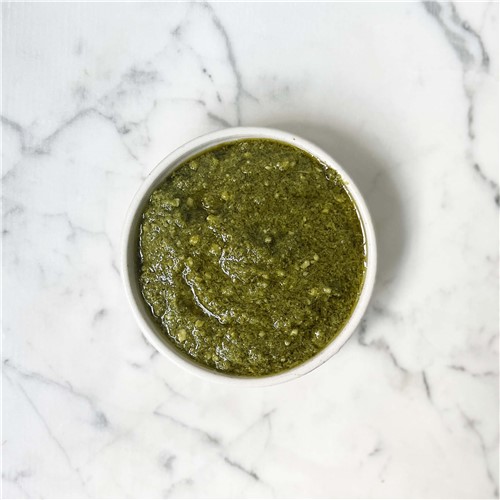 Ingredients: Basil Puree (Basil Leaf, Sunflower Oil, Salt, Ascorbic Acid) Prosociano Grated (Vegan) (Water, Modified Potato Starch, Coconut Oil, Maize Starch, Rice Starch, Potato Starch, Sea Salt, Rice Protein, Olive Leaf Extract, Flavouring, Vitamin B12), Rapeseed Oil, Garlic Puree