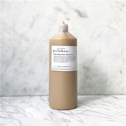Ingredients: Tahini (Sesame) Paste (17%) Sesame Oil (15%) Water Granulated Sugar White Miso Soya Bean Paste (11%) (Water, Soya Beans, Rice, Salt) Ginger Puree Yutaka Tamari Soy Sauce (Water, Soya Bean, Salt, Rice, Alcohol) Rapeseed Oil Concentrated Lime Juice Rice Wine Vinegar (Rice, Salt, Water) Garlic Puree Preservative: Potassium Sorbate (E202)