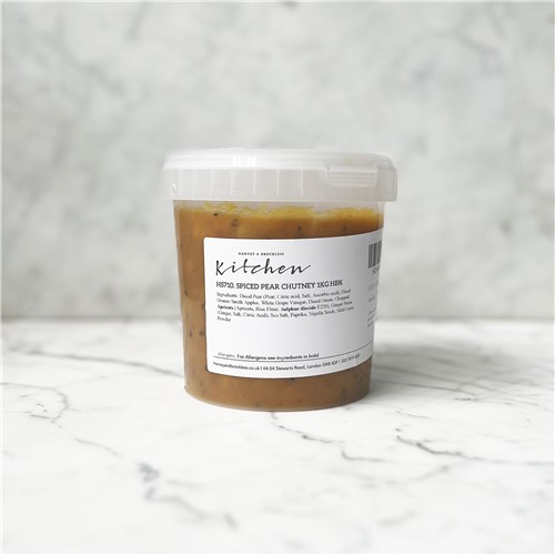 Ingredients: Diced pear (pear, citric acid, salt, ascorbic acid), diced granny smith apples, white wine vinegar, diced onion, chopped apricots (apricots , rice flour, sulphur dioxide), ginger puree (ginger, salt, citric acid), sea salt, paprika, nigella seeds, mild curry powder (ground coriander, turmeric powder, ground cumin, garlic powder, salt, ground fenegreek, chili powder, ground black pepper, ground fennel, rapeseed oil)
