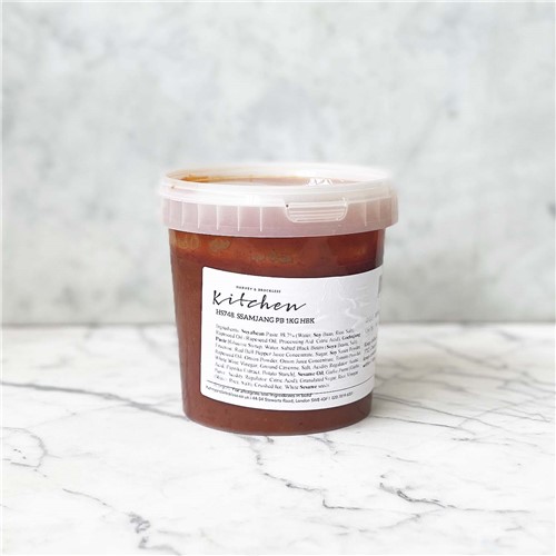 Ingredients:Soybean paste (Water, Soy bean, Rice, Salt), Refined rapeseed oil (Rapeseed oil, Processing aid: citric acid), Gochujang paste (Glucose syrup, Water, Salted black beans (soy beans, salt), Fructose, Red bell pepper juice concentrate, Sugar, Soy sauce powder, Rapeseed oil, Onion powder, Onion juice concentrate, Tomato powder, White wine vinegar, Ground cayenne, Salt, Acidity regulator: acetic acid, Paprika extract, Potato starch), Sesame oil, Garlic puree (Garlic puree, Acidity regulator: citric acid), Granulated sugar, Rice vinegar (Water, Rice, Salt), Crushed ice, White sesame seeds.